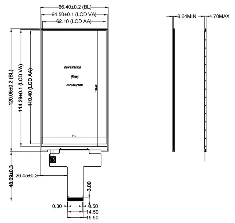 எங்கள் 5.0 உயர் பிரகாசம் ஐபிஎஸ் டிஎஃப்டி கொள்ளளவு தொடுதிரை தொகுதி மூலம் உங்கள் சாதனத்தின் காட்சி தாக்கத்தை உயர்த்தவும்: ஸ்மார்ட் சாதனங்கள், அணியக்கூடியவை அல்லது வாகன பயன்பாடுகளுக்கு இது ஏற்றது, ஏனெனில் அதன் 720x1920 தெளிவுத்திறன் ஐபிஎஸ் முழு பார்வை கோணங்களை (178 °) சந்திக்கிறது, 300 சிடி/மீ² பிரகாசத்துடன், நேரடி சூரிய ஒளியில் கூட காணப்படுகிறது; 1.85 மிமீ சுயவிவரம் மற்றும் காம்பாக்ட் 66.40x120.05x1.85 மிமீ.