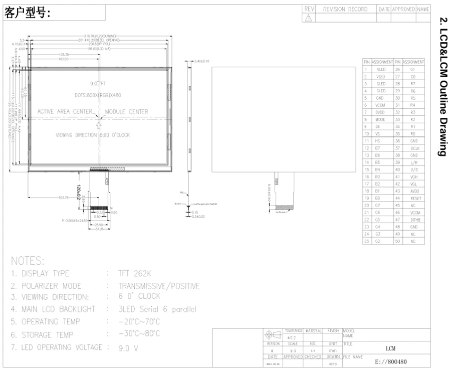 800 × 480 தெளிவுத்திறனுடன் 9.0 அங்குல வெள்ளை எல்இடி டிஎஃப்டி ஐபிஎஸ் டிஎஃப்டி எல்சிடி திரை தொகுதி. இது ஒரு பிரகாசமான 120 சிடி/மீ² பிரகாசம், பரந்த பார்வை கோணங்கள் மற்றும் குறைந்த மின் நுகர்வு ஆகியவற்றைக் கொண்டுள்ளது. 9. இது தொழில்துறை, அலுவலகம் மற்றும் தகவல் தொடர்பு கருவிகளுக்கு ஏற்றது. இது ஆற்றல் திறன் கொண்டது, நீடித்தது மற்றும் தெளிவான வடிவமைப்பைக் கொண்டுள்ளது.